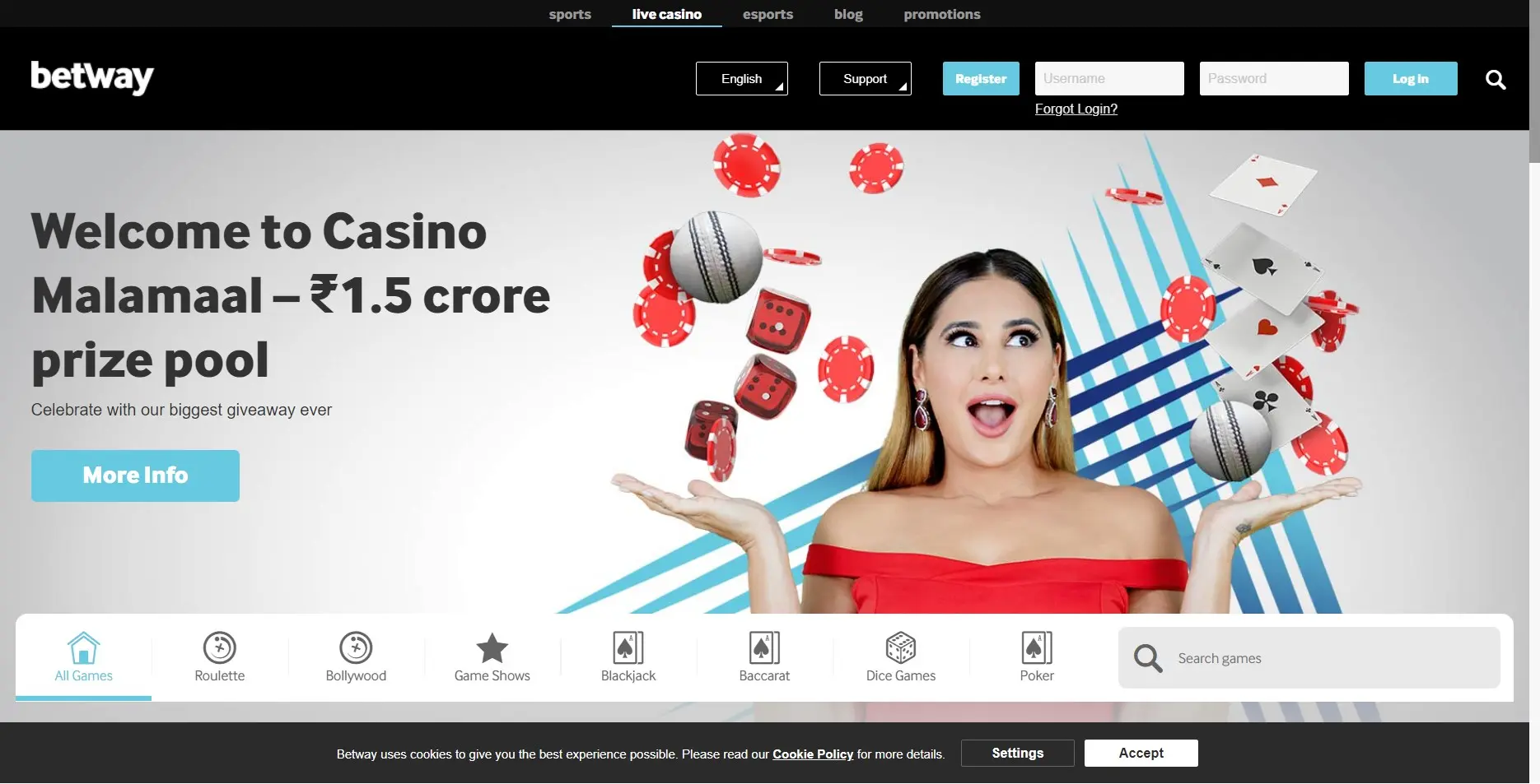 Betway casino India platform offers everything under one umbrella. Unfortunately, Indian players can only get access to live casino games. Other pages are going to open into a blank.