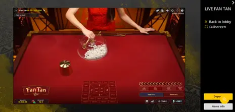 Since Fan Tan live casino is a live dealer game, there is no free version for it. Live dealer games don't have a demo version. However, you can attempt to watch a game session without placing a bet to see how the game is played.