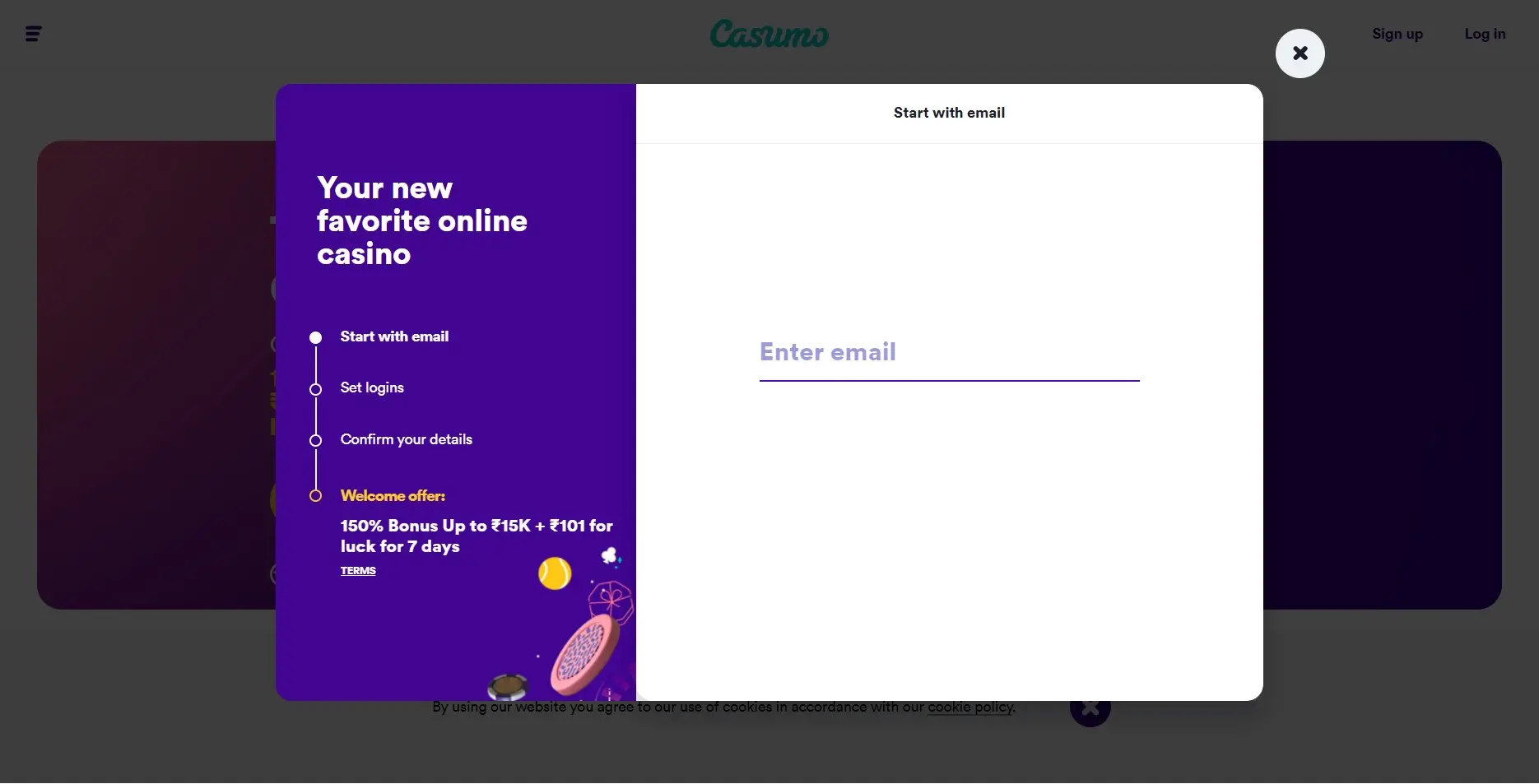 It takes only a few minutes to register at Casumo casino. The first step to registering is to go to the official site. Then follow the steps given below-