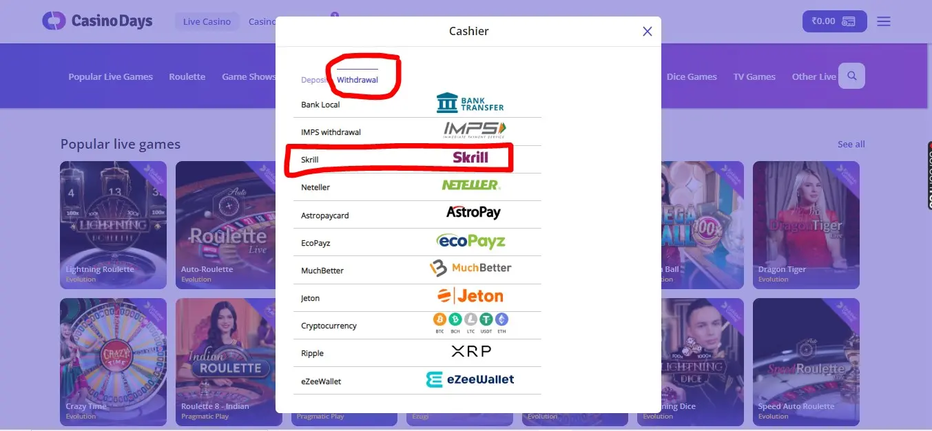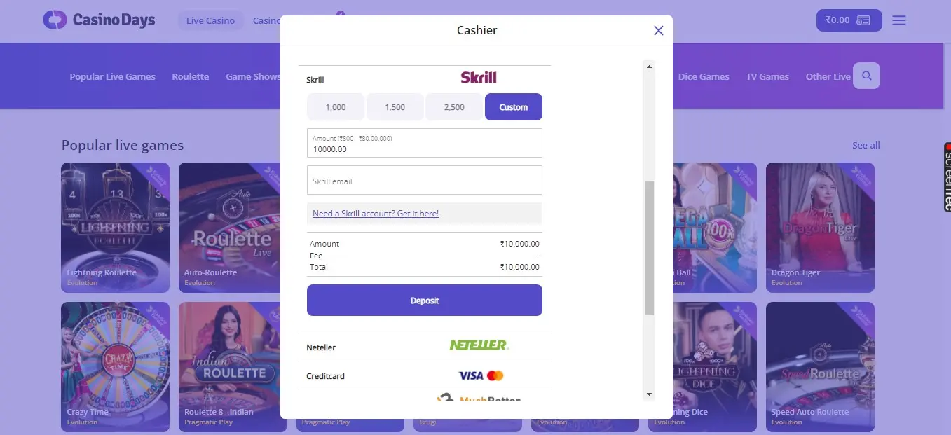 Steps to make deposits using Skrill at any online casino India Skrill are the following: