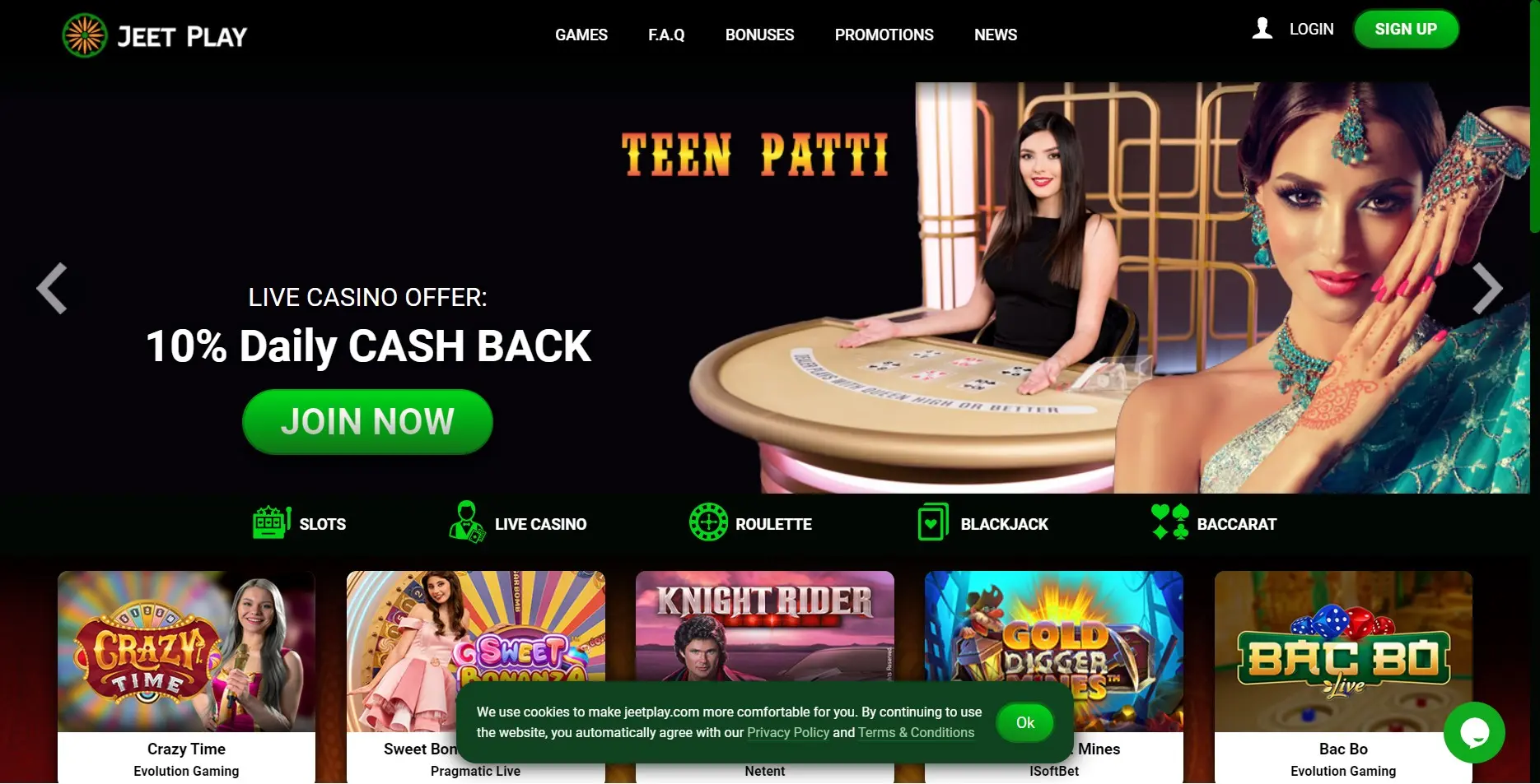 Join JeetPlay casino online India platform, make a deposit, and win a bonus up to ₹70,000.