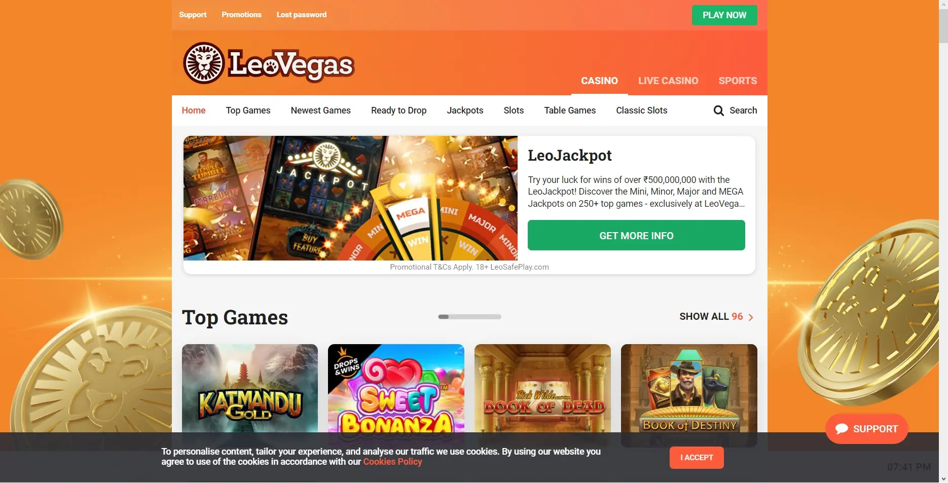 - On the homepage, click on ‘Play Now'.